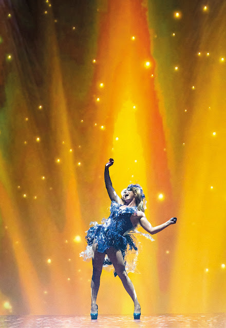 Olennaisena osana tällaista esitystä on tietysti myös visuaalinen näyttävyys - ja sen osaltahan Priscilla on ylitsevuotavainen! Hahmojen luonnissa näyttelijätyön lisäksi iso merkitys on Tinja Salmen suunnittelemilla puvuilla ja Aino Hyttisen suunnittelemalla naamioinnilla. Voisin kuvitella, että suunnittelijoilla on ollut suorastaan hauskaa päästäessään luovuutensa valloilleen ja luodessaan mitä mielikuvituksellisimpia, värikkäimpiä, säkenöivimpiä, moninaisimpia pukuja sekä naamiointeja. Ja niitä on hyvin runsaasti erilaisia!